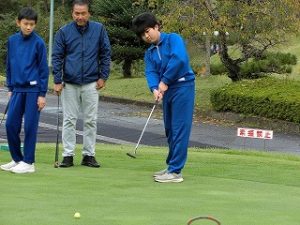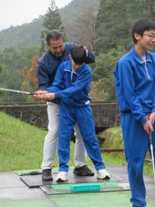 秋山中はゴルフ体験ができる学校です。歩いてゴルフ場に通えます!