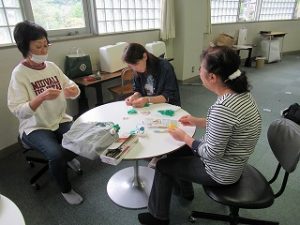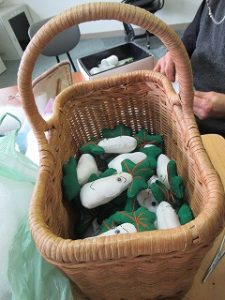 長かぶフェスに向け、2回目の秋中サロンが開催されました。今日は、前回材料を持ち帰ってくださった「ちくちく会」のみなさんがご自宅などで大量にかっちゃんマスコットを仕上げて来てくださり感激でした。