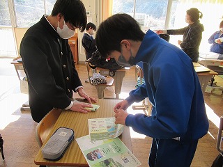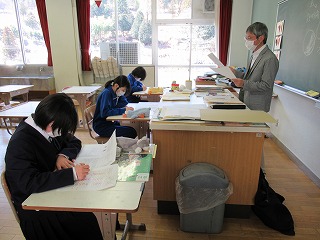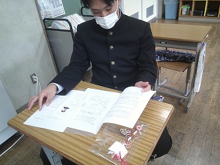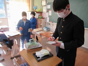 6校時の学活。今日が「大安」ということで3年生には大事な大事な「受検票」と受検の心得が手渡されていました。いよいよ来週の水曜日が公立高校後期入試です。