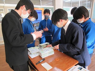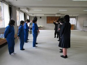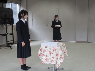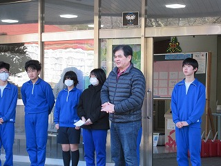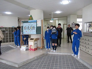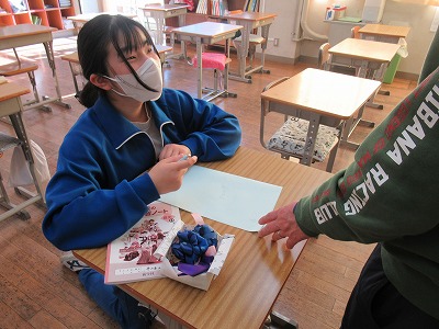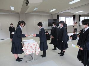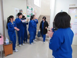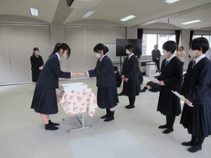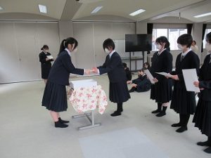 卓球部は、昼休みに1,2年生からお世話になった3年生に色紙の贈呈を行っていました。