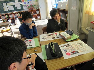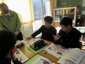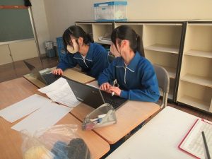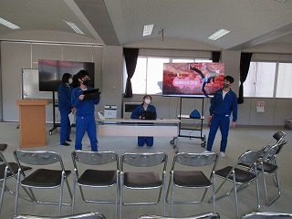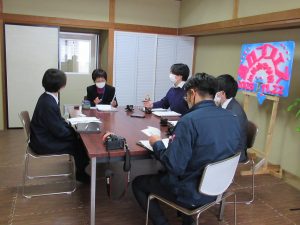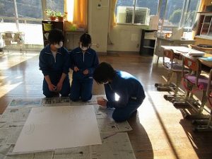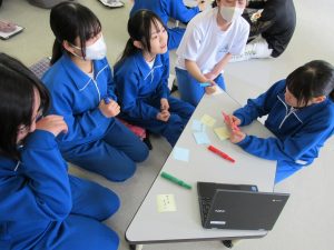 マス釣り場と二十六夜山の紹介動画をつくるため、グループに分かれて編集会議を行いました。