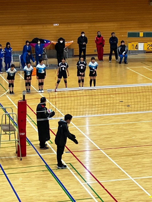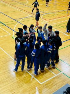 今年は人数が足りないため、猿橋中と合同チームを組み出場しました。朝から雪が降りしきる寒い日になりましたが、2年生も含めみんな試合を楽しんでいて、1日を通して予選から決勝トーナメント、午後は練習試合と、たくさんの試合を経験することができました。