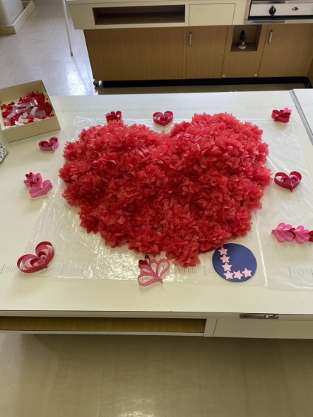 校務助手さんがバレンタインデーにちなんだ素敵な掲示物を作ってくださいました。ハートが立体的でとてもかわいいです!