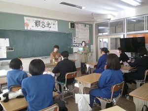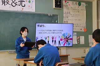 新聞に掲載された3年生の「わたしも言いたい」の投稿記事をきっかけに、県のボランティア協会と市社会福祉協議会の方々が本校で授業を行ってくださることになり、本日実施に至りました。