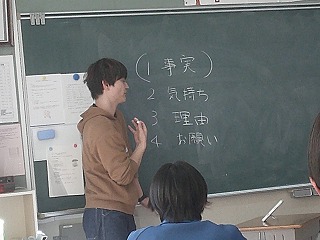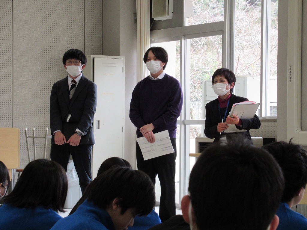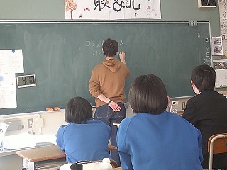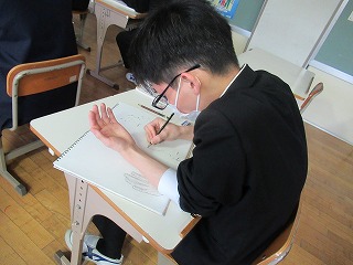 スクールカウンセラーの先生が、これから高校生活で新しい人間関係をつくっていく3年生に向けて、「コミュニケーション能力を高める方法」について特別授業をしてくださいました。まず「コミュ力」を高めるための方法→相手の話を引き出すための引き出しをいくつも持っていること。から始まり、相手に嫌われないように言いたいことを言わずにいるより、正直な気持ちを話し、わかり合うことが大事であること。そして話を広げる質問の出し方について、実際に一つの趣味の話に対して全員で順番に質問を出しながら考えてみたりしました。新しい環境に飛び込むことは、少し不安な面もあるかと思いますが、今日の授業は友達作りのとても良いヒントになったと思います。