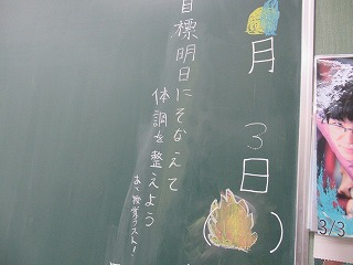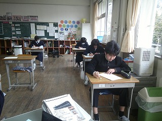 本日3年生は最後の教科の授業を終え、大半の生徒が明日公立高校後期入試に臨みます。