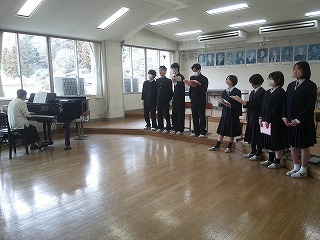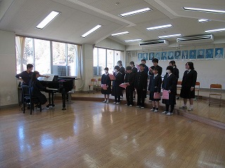 卒業式に向けて、合唱練習が始まりました。自分たちで音取りをしながら何度も繰り返し練習して、音を覚えていました。