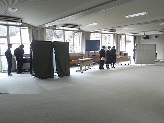 選挙管理委員会の事務局が設置され、昼休みに立候補者が届け出を行いました。