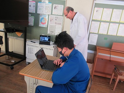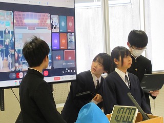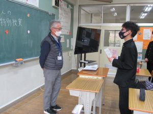 授業に先だち、ボランティア協会の方のご希望で、きっかけの投稿中の「余裕はボランティアがつくるのだ」という思考が生まれた背景などについて、記事を書いた生徒にインタビューが行われました。