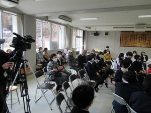 前回撮影でお世話になった都留文科大学の吉岡先生、原田先生、邊見先生と学生さんが編集作業のお手伝いで来校してくださいました。