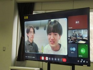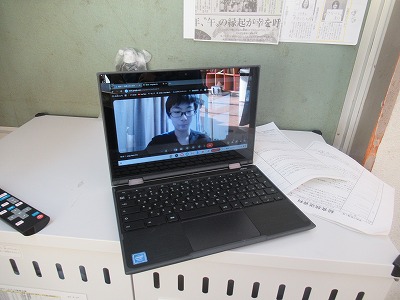 ↓オンラインで入っている生徒も画面越しに応援!