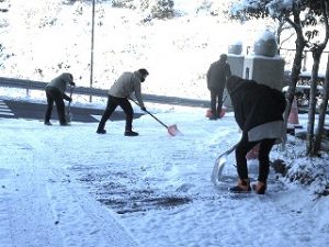 若い先生お二人が真っ先に出勤し、張り切って雪をかいてくれました。