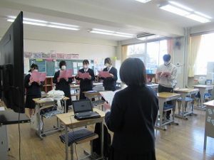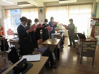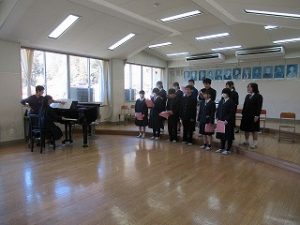 1,2年生は3贈会に向け、合同での合唱練習に励んでいます。まだ少し練習不足ではありますが、これからラストスパートで仕上げていってほしいと思います。