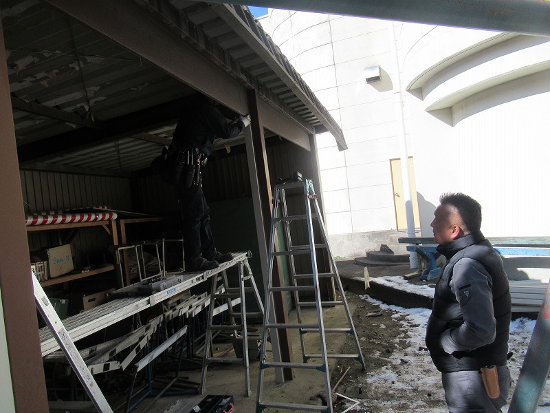 2018年の台風被害で壊れ、そのままになっていたバックネット裏体育倉庫のシャッターがやっと修理されました。朝から業者の方が寒い中作業を進めてくださり、1日できれいに修繕されました。落ち葉や砂埃が入って大事な物は保管できなかった倉庫ですが、見違えるようにきれいになったので、今後は中を整理し、有効に使っていきたいと思います。