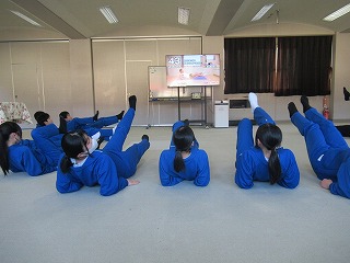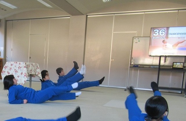 今日、3年生は中学校最後の期末テストのため朝は学習でしたが、1,2年生は新しいプログラムの体幹トレーニングを行いました。YouTubeのメニューをうまく使って10分間みっちり腹筋を鍛えました。これで秋中生は全員腹筋バキバキです!