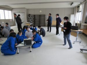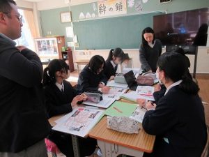 編集に使うパソコンや機材も持参していただき、先生方や大学生の指導の下、グループに分かれて作業を進めました。本格的な作業内容で、生徒たちも勉強になることが多かったようです。