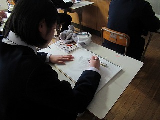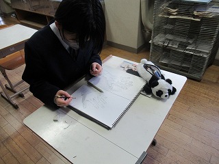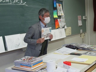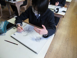 もちろんすぐ上達が見て取れる作品がほとんどですが、中には途中までしか描けない作品もありました。そんな作品を見て先生は、「形へのこだわり」が感じられる。それは心の成長の証。この3年間で学んできたことはそういうことなんです。とおっしゃっていました。そして、最後に「これからも美術に対する心、気持ち、見方を大事にしてほしい」とメッセージをくださいました。