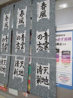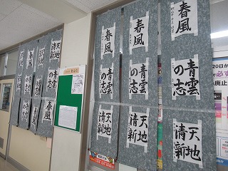 職員室前の廊下に、書き初めの北都留地区の入選作品が展示されました。本校の3展の入選作品も飾られています。