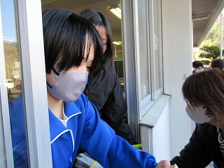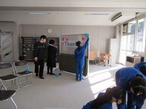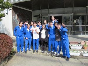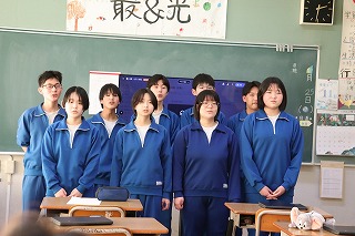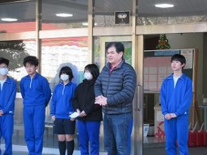✨午後からは、1,2年生は卒業式の会場設営でしたが、3年生は最後の愛校作業で校舎の窓磨きをしていました。そこへ、嬉しいことに小学校5,6年の時に担任だった芦澤先生がわざわざお祝いメッセージを届けに来てくださり、生徒たちと会ってくれました。