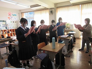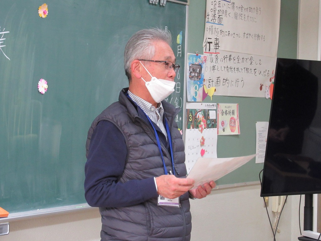 その後の学年部会では、卒業前後でのたくさんの確認事項について読み合わせながら確認を行っていました。卒業まであと約2週間。さみしさを感じながらも、生徒の大きな成長を間近にして胸が熱くなる季節です。