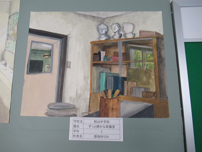 図美展の移動展がやってきました。どれも素晴らしい力作ばかりでとても良い刺激になります。本校の入選者の素敵な作品も他に引けを取らず、堂々と飾られています。