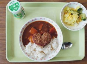 給食もハートのハンバーグカレーでした。