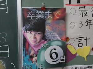 教室のカウントダウンが残り6日になり、日直の言葉にも「授業ラスト」が入っていました。