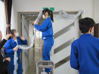 飾り付けでは、それぞれの場所でみんな楽しそうに作業をしていて、明日はそうやって後輩達が素敵に飾り付けてれた会場を見て、3年生もきっと喜んでくれることと思います。
