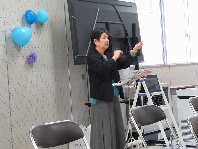 二十六夜山のコーナーでは、山の名前の由来の他、登山の途中で見つけたきのこや砂防ダムにちなんだ豆知識、実演付きのころび方講座などが発表されました。
