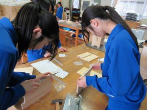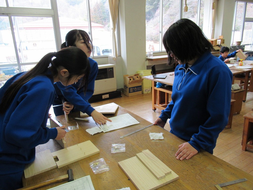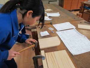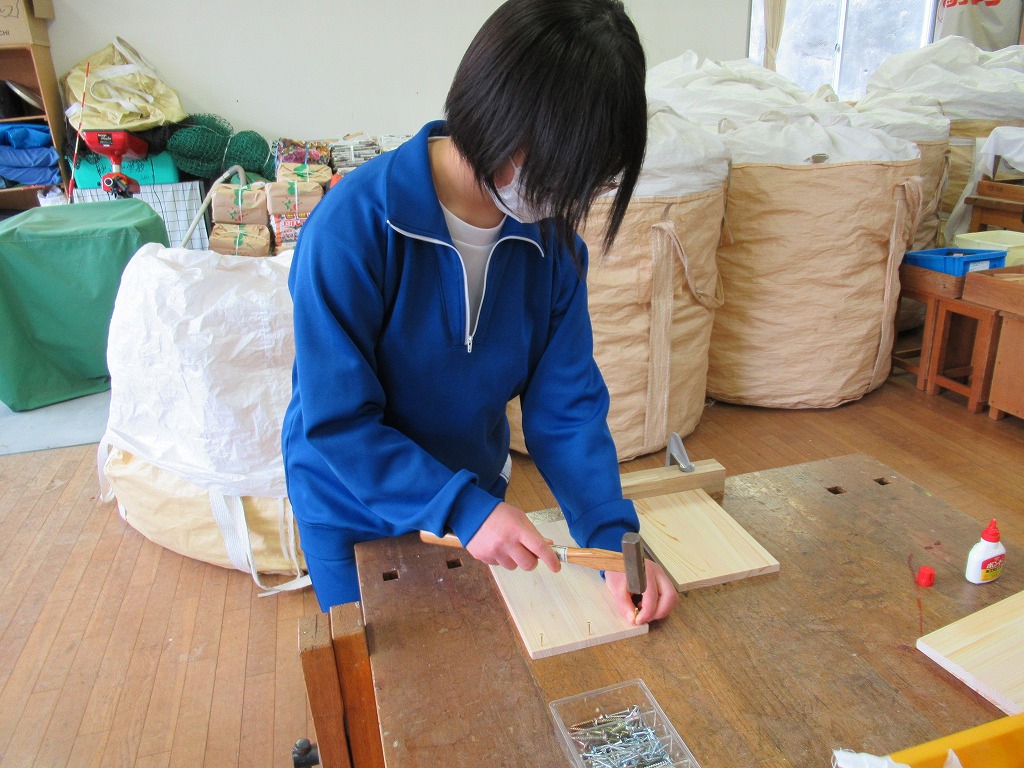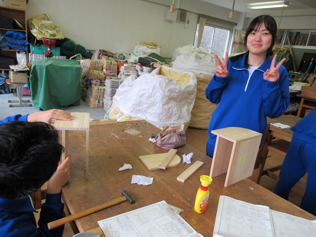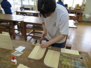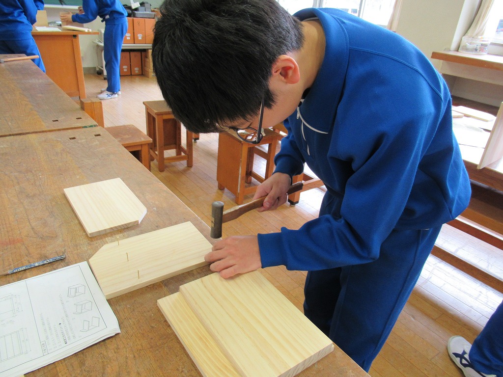 1,2年生は技術科で木工作品の制作をしていました。