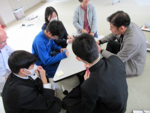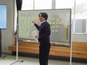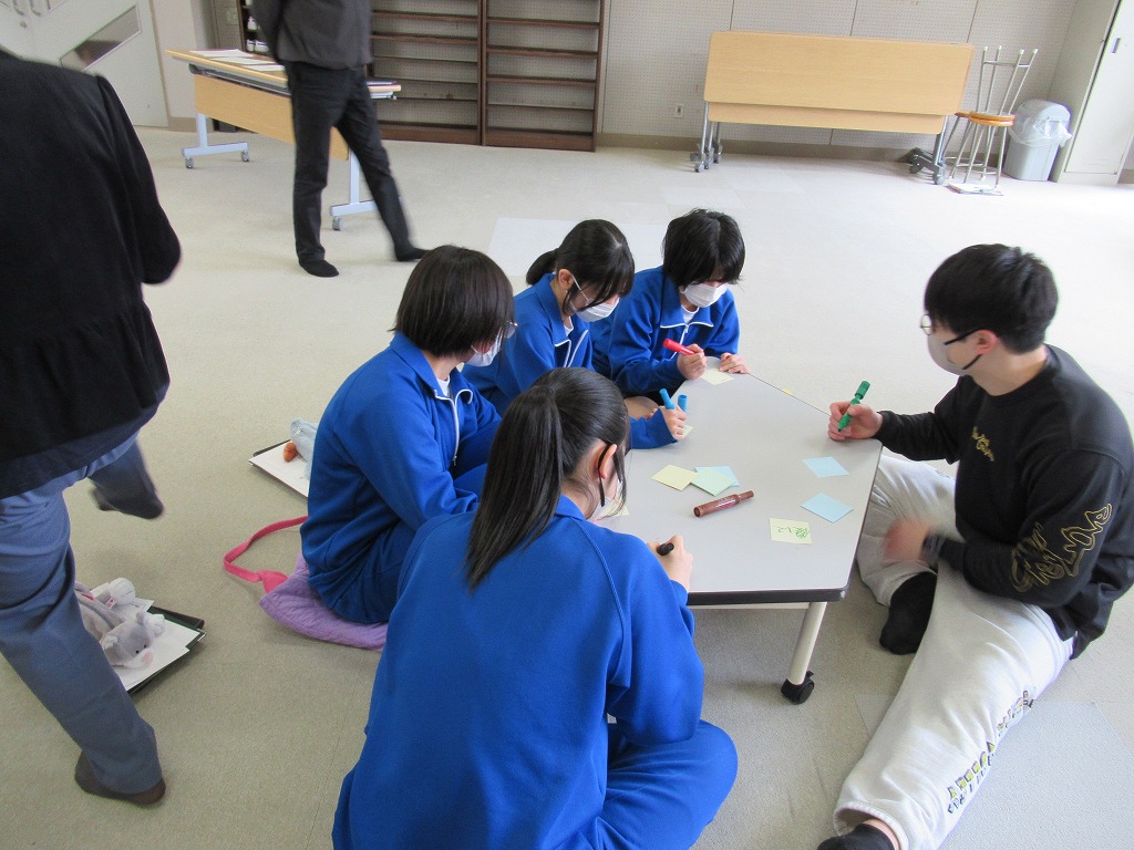 役員からはボランティアや福祉についての説明があり、その後上野原市で行われているボランティア活動の例を参考に自分たちでもできそうな活動をグループごとに話し合う時間が持たれました。