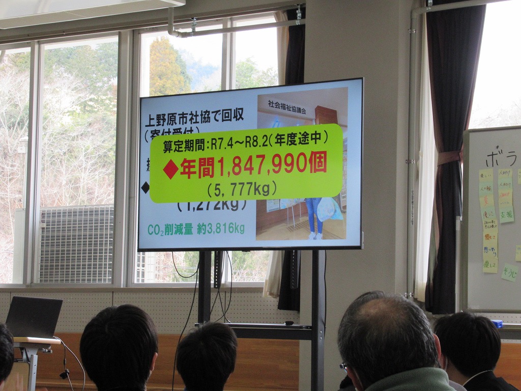 また、この会場に行く前に上野原市社会福祉協議会に立ち寄り、先日集めたペットボトルキャップを手渡してきました。その受領証を、発表の中で紹介する場面もありました。