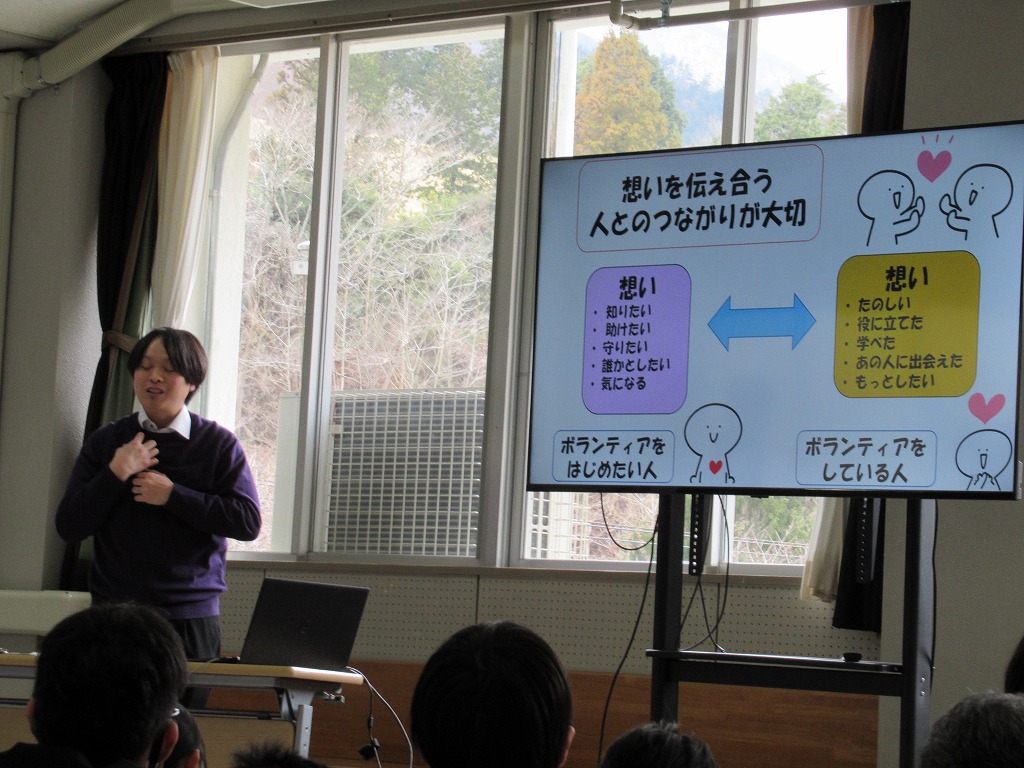 生徒会本部が企画したボランティアについての生徒集会が開かれました。