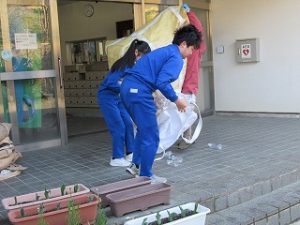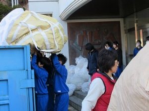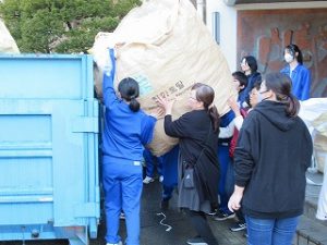 今年度最後の資源回収が行われました。4月からは、市の職員の方が定期的に回収にきてくださるので、生徒と保護者がそろっての積み込み作業は、これが最後の機会となりました。雨上がりの青空の下、みんな元気に作業を進め、あっという間にコンテナ2台分の積み込みが終了しました。