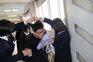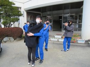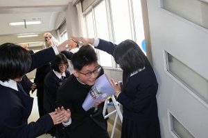 そんな3年生を帰り際、全校生徒と先生方が玄関で「頑張れ-!」と声をかけながら送り出しました。