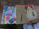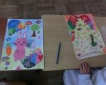 1,2年生が図工の学習で「ふしぎな たまご」という題材に取り組みました。今日は作品が仕上がり、作品発表会を行いました。