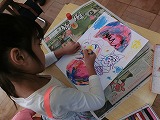 最後に、5、6年生が作成した手作りプレゼントを1年生に渡しました。裏面には校歌が印刷されています。同じものは2つとないプレゼントでした。1年生はプレゼントを手に取ると、嬉しそうに眺めていました。最後に、1年生がお礼を伝えると、大きな拍手がわき起こりました。教室に戻ってからも
