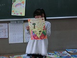 発表会では、①作品名、②想像した話の内容、③頑張ったところを一人ずつ友達に伝えました。一つ一つの作品には、子供たちの思いが込められており、素敵な作品に仕上がりました。少し照れくさそうに説明している姿も見られましたが、きちんと伝えられました。