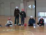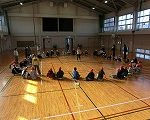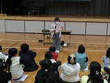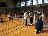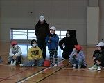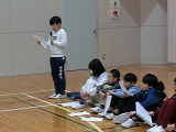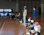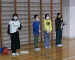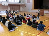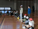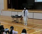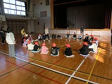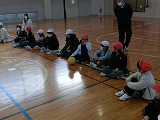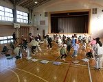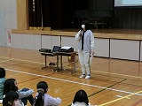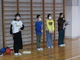続けて、爆弾ゲームも全員で楽しみました。「ジングルベル」の曲に乗せて4つのボールを同時に回し、音楽が止まったときボールを持っていた子供たちが「名前」「誕生日」を発表します。ボールが2回止まってしまった子供たちは「好きな色」「好きな食べ物」等を伝えました。発表する人が話そうとすると体育館は自然と静かになり、しっかり耳を傾けて聞くこともできました。話が終わると大きな拍手が起こり、音楽が流れると自然と手拍子も起こり気分も上がりました。とても和やかな気持ちになる良い機会になりました。
