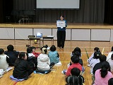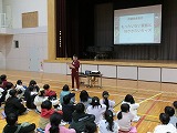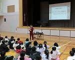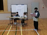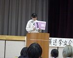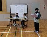 ロングの時間に保健集会を体育館で行いました。テーマは「食」についてです。この日のために、保健委員会のメンバーは準備を進めてきました。作成した動画を披露したり、食育クイズを出題しました。
