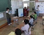 同時刻、選挙管理委員の子供たちは家庭科室において打ち合せをしていました。クラスの代表として参加している子供たちです。担当者の話をしっかり聞き、今後の準備に取り組んでいました。