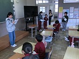 1年生にとって、縄が回るタイミングを図り、跳んでから抜けていく動きはなかなか難しいものです。5,6年生が入るタイミングを教えたり、うまく跳べたら誉めたりするうちに自分で考え1年生も跳べるようになりました。