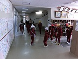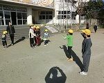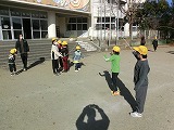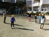 私は校庭で遊んでいる子供たちが、どのような行動をするのか注目していました。地震発生の訓練放送が流れると、まず動きを止めて放送を聞く姿勢をとりました。この時、子供たち同士の呼びかけは聞こえませんでしたが、一瞬のうちに10人はいたであろう子供たちの動きが止まりました。