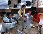 本日、図工室においてクラフト体験を行いました。北都留森林組合の方が3名、講師に来てくださり、5,6年生が挑戦しました。