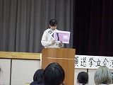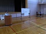 同じ頃、体育館では明日の立会演説会のリハーサルが行われました。私は昼休みに見学に行きましたが、本番さながらの緊張感の中、会の流れ、運営手順、広い場所での声の大きさ等を確認しました。いよいよ明日が本番です。一生懸命考えて準備した自分の考えや思いを思う存分伝えてほしいです。