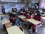 校内では、児童会役員選挙を控え、選挙管理委員会を担当する子供たちが家庭科室で働いています。
