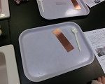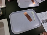 「氷を切断してみよう」では、ガラス、プラスチック、銅板の中で、どれが一番氷を溶かすことができるのか体験しました。氷に銅板を押しつけると他の2つとは明らかに違う変化が見てとれました。