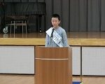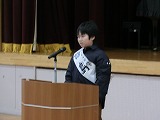 最後には全校の方へ向き直り紹介されました。全校の視線が3人を見つめました。