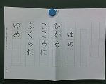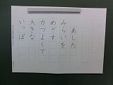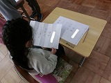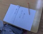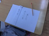 手本を見ながら時間をかけて、一画一画丁寧に書いていきます。集中して書いていると、力が入って固まった手を振ってほぐしながら取り組んでいます。努力に勝る天才なし! 練習した分だけ上手になるので、練習に取り組み納得のいく文字を書いてほしいです。
