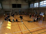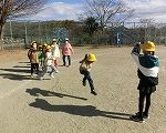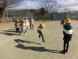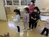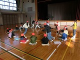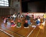 フルーツバスケットは、体育館で楽しみました。最初は赤・白に分かれて行い、その後全員で一つの円を作って楽しみました。